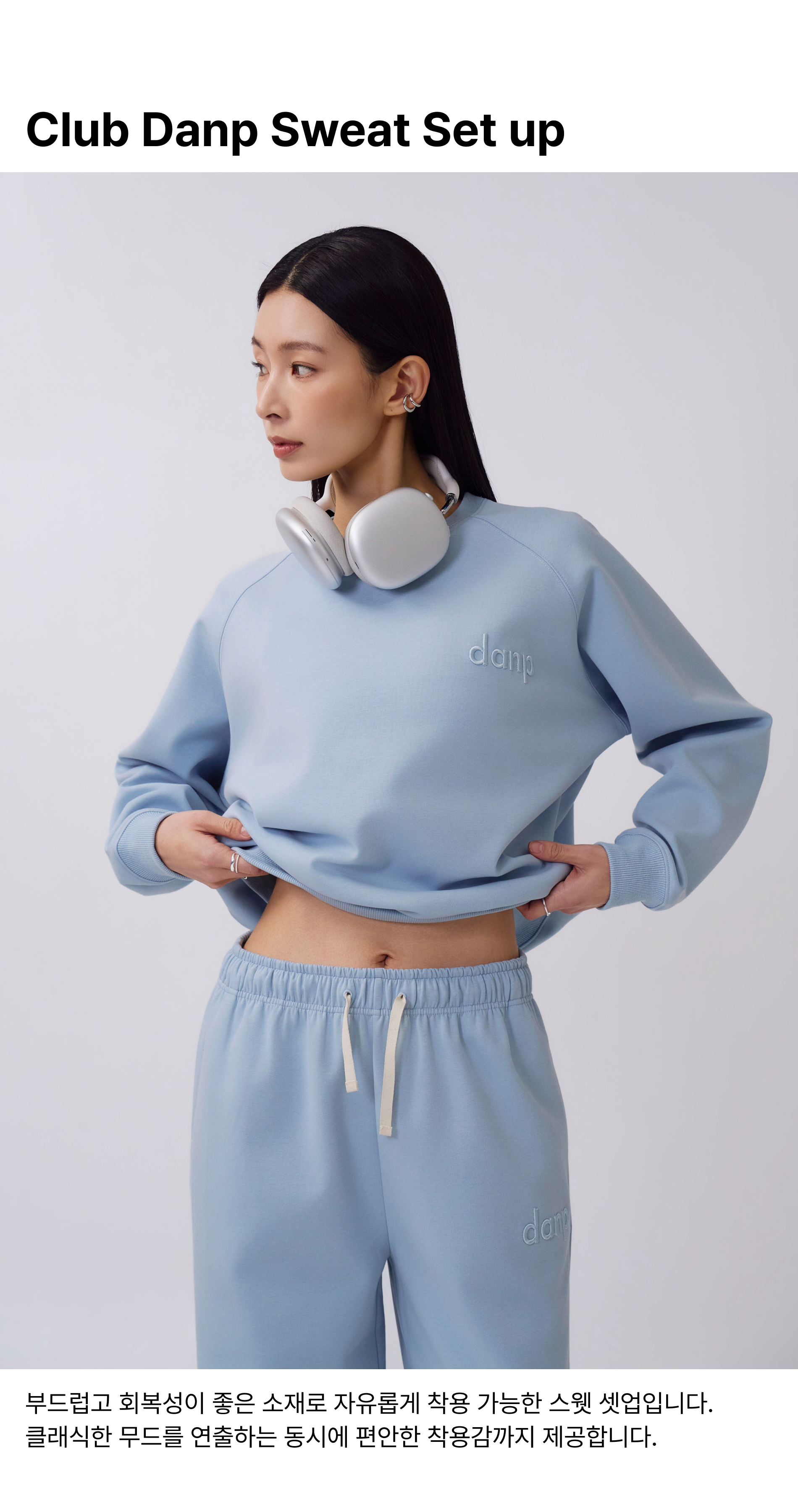 다양한 움직임 속에서 자유롭게 착용 가능한 클럽 댄프 스웻 셋업입니다.