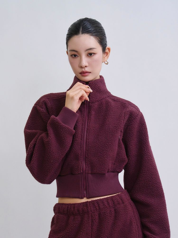 겉감은 플리스, 안감은 면 촉감의 더블 원단을 사용한 크롭 기장의 플리스 집업 재킷으로 따뜻하면서도 상체 라인을 살려 착용할 수 있는 제품입니다.